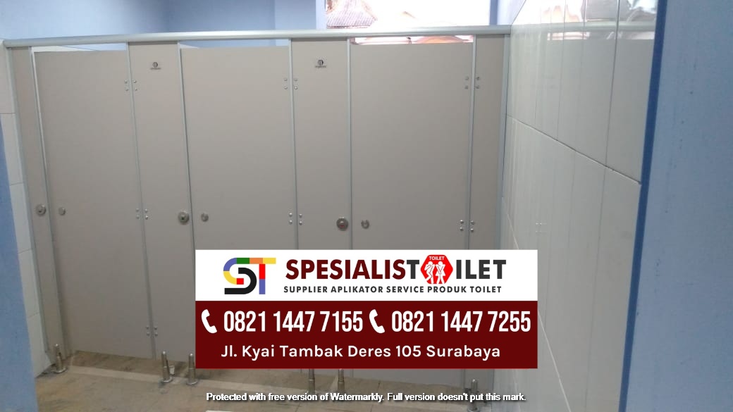 Partisi toilet atau Cubicle Toilet Phenolic yang kami tawarkan memiliki harga yang beragam, oleh karena itu untuk informasi lebih lengap dan jelasnya, Anda bisa menanyakan hal tersebut pada customer service kami. Kami juga menawarkan layanan konsultasi yang bisa Anda gunakan secara gratis untuk berkonsultasi terkait Partisi Toilet Phenolic yang kami tawarkan, tim kami akan melayani Anda sepenuh hati. SpesialisToilet.com merupakan perusahaan supplier dan kontraktor untuk kebutuhan Toilet yang siap melayani Anda untuk jasa pemasangan Partisi Toilet Phenolic untuk jangkauan wilayah Tarakan dan berbagai daerah Jawa Timur lainnya.